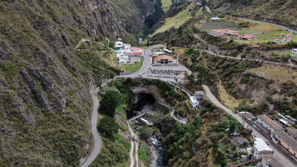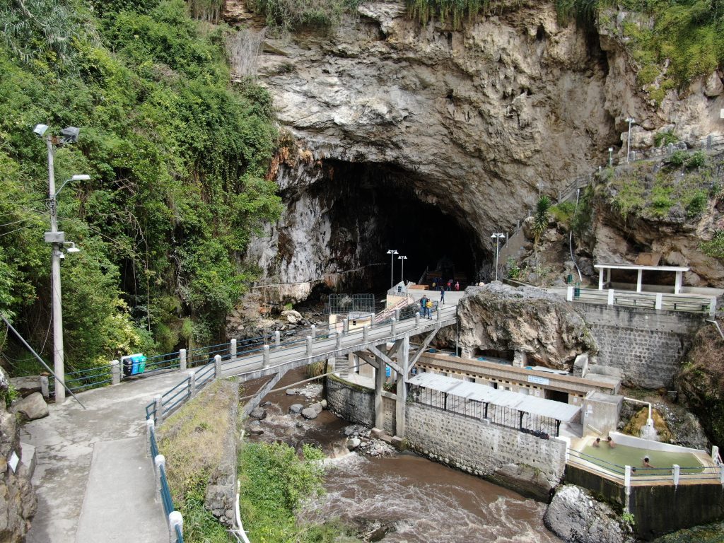 A 18 Km. de la ciudad de San Gabriel, se encuentra una gruta natural rocosa que guarda misterio y devoción, que por cuyas entrañas cruzan las aguas del río ApaquÍ. Es una caverna de piedra decorada por estalactitas y estalagmitas, en su interior se levanta imponente la imagen de Nuestra Señora de La Paz, templo natural que brinda al visitante recogimiento y un encuentro con Dios. Además, los visitantes pueden disfrutar de un baño revitalizante en piscinas de aguas termales que nacen de lo profundo de la Gruta.
